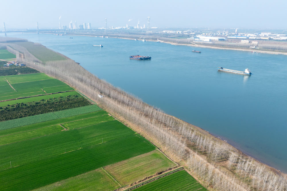 2026年1月6日在湖北省荆州市公安县杨家厂镇长江村拍摄的长江荆州段(无人机照片)。新华社记者杜子璇摄