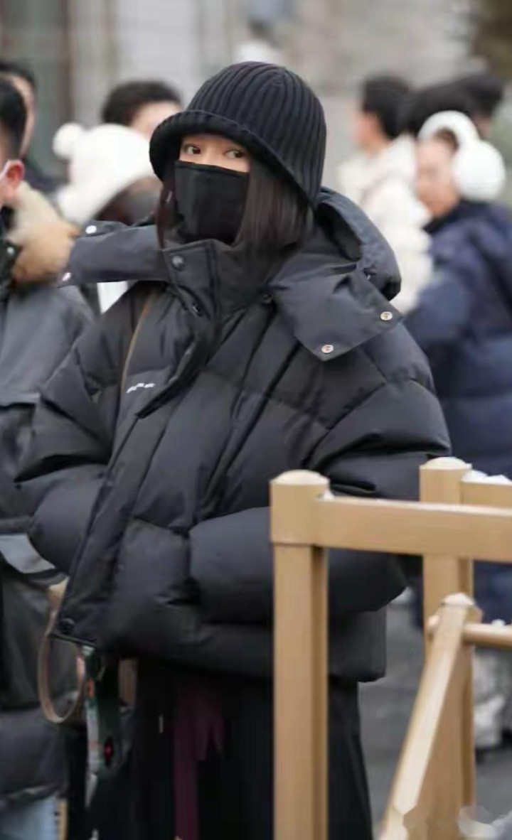 开云 春晚彩排秦岚身着超厚实羽绒服、头戴黑帽、黑口罩只露两个眼睛了