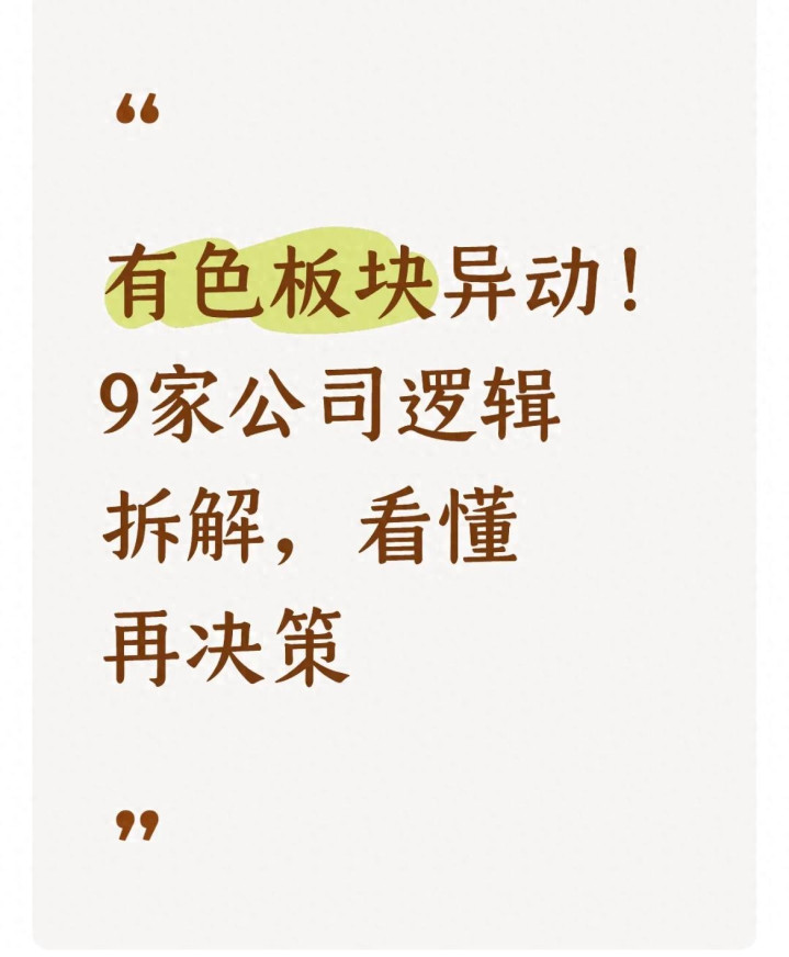 最近A股的有色金属板块明显热了起来:LME铜价创半年新高,锂价结束一年多的下跌开始反弹,就连稀土、钨这些平时关注度不高的品种,也有资金在悄悄布局。不少投资者都在问:这波行情是短期炒作,还是真的有基本面支撑?本文为行业观察内容,不构成任何投资建议,仅用大白话拆解9家核心公司的底层逻辑,帮你分清核心逻辑与潜在风险,避免盲目跟风踩坑。