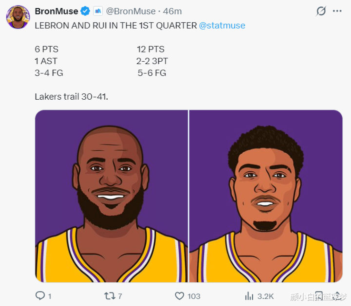 41岁的勒布朗首节8分钟里,4中3,拿到6分1篮板1助攻,八村垒首节6中5拿到12分,但湖东谈主的问题是着重,独行侠首节狂揽41分跳跃湖东谈主11分之多。