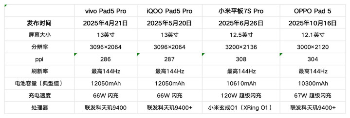 尤其是底下这四款居品——vivo Pad5 Pro、iQOO Pad5 Pro、小米平板7S Pro、OPPO Pad 5——虽然阛阓热度和新品光环各不疏浚,但放在3000元档,它们依然是大屏、高性能、长续航线线里绕不开的主流选项。