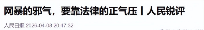 4月8日,东谈主民日报客户端重磅发声,针对全红婵被网暴一事,发布了锐评著述,标题是《网暴的邪气,要靠法律的浩气压》。
