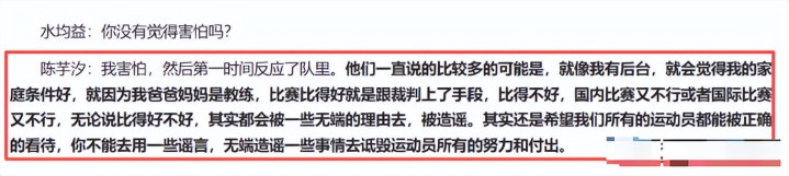 说陈芋汐嫉恨全红婵的资质,各式刁难她,把一双亲密的姐妹,说得像仇东谈主通常。