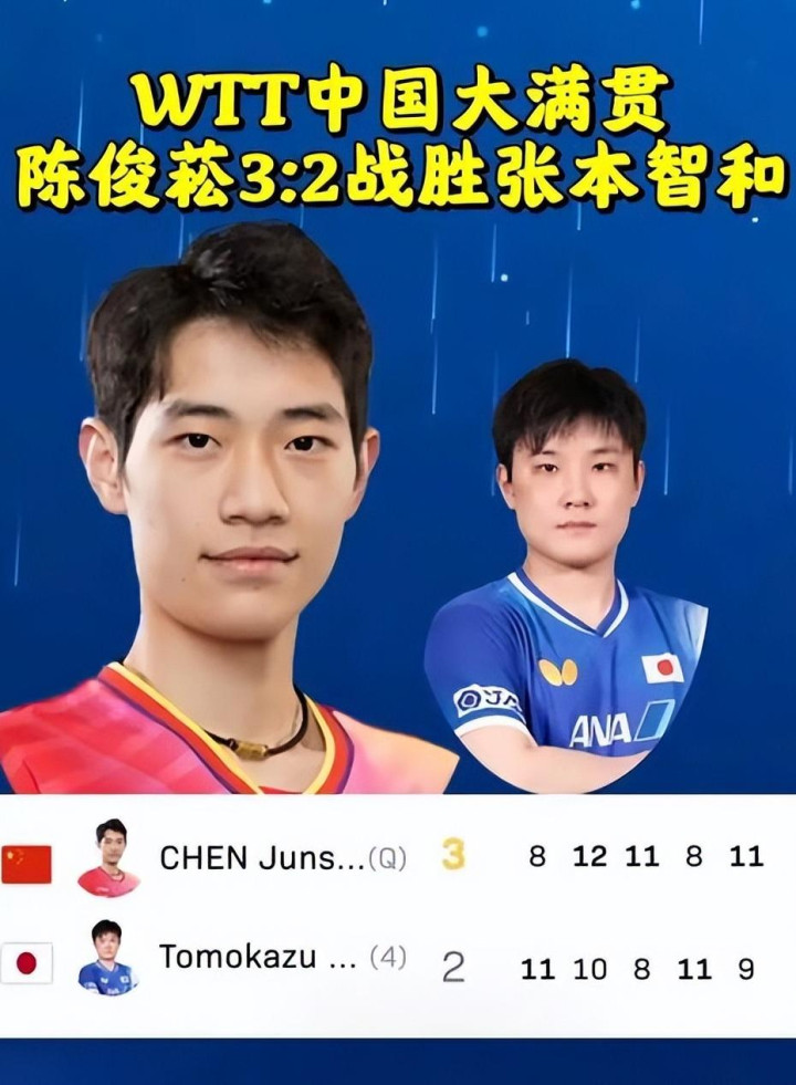 当时陈俊菘持外卡从资格赛突围,正赛首轮就撞上了日本天才选手张本智和。