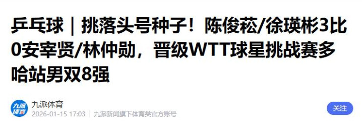 先是爆冷掀翻张本智和,如今又在多哈赛场连斩顶尖选手。