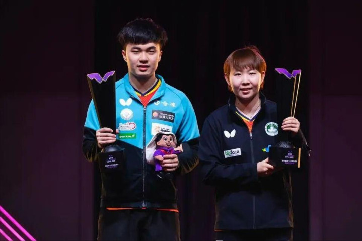 林昀儒与代表中国澳门出战的朱雨玲分获男女单冠军。