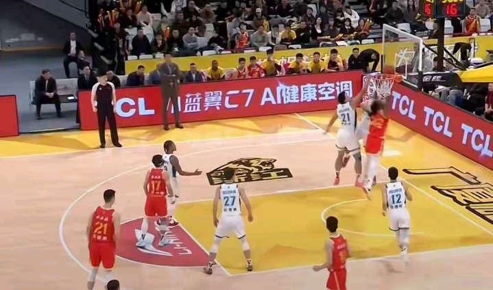 卡尔顿、布朗、朱俊龙、孙铭徽、胡金秋首发,卡尔顿本赛季场均得到不超过6分,只有5.3分,卡尔顿一度在被裁的边缘,恰恰本场比赛遇到青岛崂山的内线,卡尔顿迎来最大的爆发!
