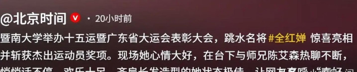 2025年9月,她正式踏入了自己的大学生活,开学当天她就成为了关注的焦点。开学典礼上,全红婵坐在第一排学生代表的位置,学校对她的重视显而易见。全校大合影时,她站在校长身边C位,毋庸置疑,学校想借此提升影响力,她也确实给这所大学增了不少光。
