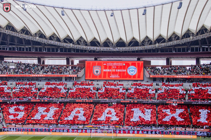 走进赛场,西安外洋足球中心的专科硬件与火热氛围完整交融。赛前场馆大屏轮回播放着陕西斡旋足球俱乐部主题视频与西咸新区城市形象片,将城市风貌、发展活力与漂后底蕴传递给现场每一位不雅众。陕西斡旋官方球迷方阵早早就位,看台上,巨幅“为陕西而战”“12东谈主”球迷专版TIFO于南北看台颠簸起飞;“陕西队、西北狼”等标语响彻全场,金牌球市盛景再续光芒。