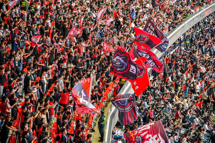 沣水之畔,绿茵振作,春日的球场被一派红玄色调捧场色调包裹,赛前数小时,场馆左近便迎来多数球迷,不同庚岁段的球迷身着主队衣饰,手抓捧场领巾、旗号有序汇集,期待的情谊在东谈主群中悄然彭胀。