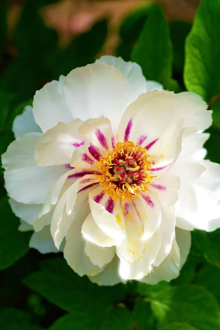 复色名品岛锦最为防范,手脚蔷薇型牡丹的杰出人物,它以“一花双色、一树百态”惊艳全场。鲜红与粉白的颜色并非爱憎分明,而是如晕染般当然和洽,或半片红、半片白,或丝丝缕缕、交错相嵌,合并株上能开出红花、粉花,以致一朵花内红白交汇,幻化莫测,在万绿丛中如锦缎流光,成为照相镜头追赶的焦点。