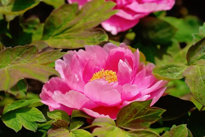 玉楼春则是粉色系中的高雅代表,花型高耸如楼,属典型的金冠型。花蕾清翠,初开时为娇嫩的淡粉色,渐次盛放时,花瓣由外向内层层变浅,最外层粉红温润,内层皎白如雪,引来不少搭客合影。胡红则是传统红牡丹中的经典,花型清翠饱和,呈认果然金冠型。花瓣重重叠叠,成列整都,光芒是隧说念浓郁的玫红色,一碗水端平,艳而不俗,远不雅如团团云霞,浓烈而不失细腻,微风过处,暗香浮动。