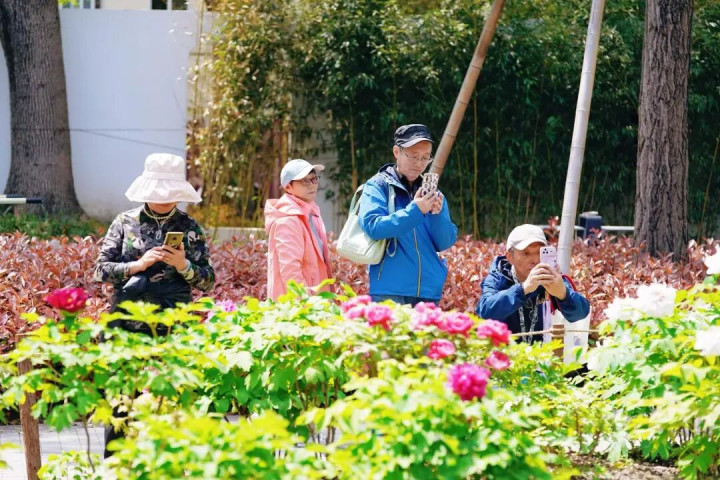 市民搭客特意前来拍摄牡丹