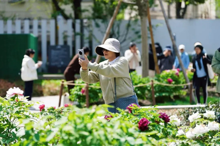 脚下公园日均客流量已近八千东说念主次,不少搭客从浦东、宝山等区域远说念而来,以致有外地搭客专程打卡,只为一睹沪上老牌牡丹园的风仪。在浩繁巡园的经过中,园方发现存部分市民搭客为追求拍摄成果,随身佩带各样爱惜具,比如小喷壶等。在此,园方也命令市民搭客端淑游园,扶持植物,不要因为刻意追求照相成果而影响牡丹的当然助长。