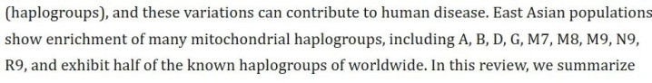 东亚人群富集多种线粒体单倍群,包括A、B、D、G、M7、M8、M9、N9和R9,占全球已知单倍群的一半。而上述研究中测出的单倍群明显与东亚大陆各主流族群不同。