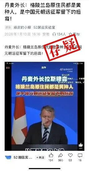 从时间上看,网传说法在2025年1月有过广泛流传,内容为“丹麦外交大臣称,格陵兰原住民是亚洲人,是成吉思汗远征军先锋队的后裔”,时值特朗普于2024年底公开表示其重燃对格陵兰岛的兴趣。