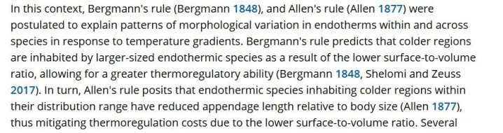常被用于解释格陵兰人体征的伯格曼法则和艾伦法则