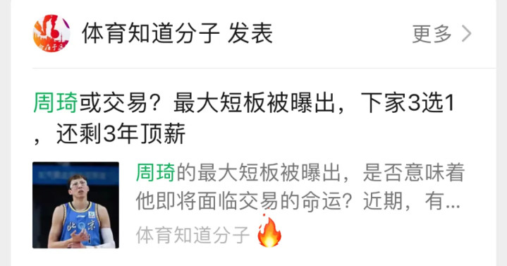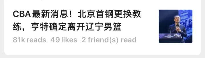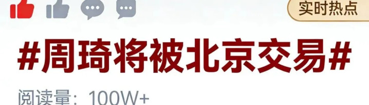 有点让人捉摸不透,一篇关于北京队因为将帅不和,周琦将被交易的文章在发布一个小时内登顶各大体育社交平台热度榜。事件在持续发酵,阅读量已经突破百万,内容被转发已经上万次。随后同样的账号又曝出北京队主帅许利民正式下课的新闻,仅用短短2分钟阅读已经逼近10万。