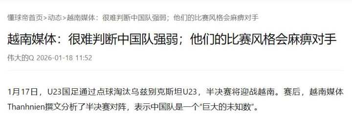 有意思的是,越南媒体这次并没有轻敌。