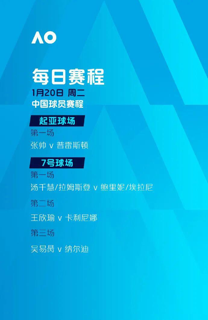 今天,2026年澳大利亚网球公开赛将迎来第三个比赛日。张帅、王欣瑜、吴易昺三位中国球员将冲击单打次轮。